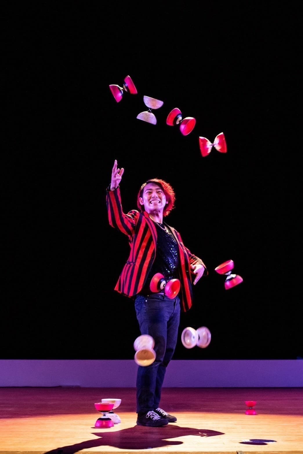 けん玉世界王者がお送りする音楽に合わせた演技をはじめ、トークと技で盛り上げる実力派パフォーマー。